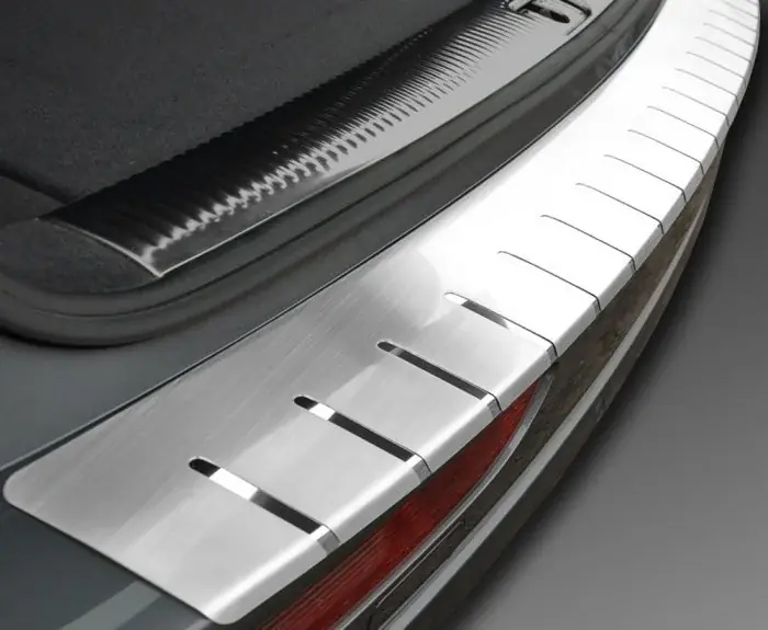 Wykończenie: Mat + PołyskIlość elementów w zestawie: 1szt- Nakładka z zagięciem na zderzak to najnowsza propozycja Alu-frost- Elementem dekoracyjnym nakładki jest wysokiej jakości efekt szczotkowanej stali. Nadaje to bardzo elegancki i prestiżowy wygląd wierzchniej części zderzaka- Wykonana z podwójnej stali nierdzewnej – grubość nakładki to ok 1,4mm !- Zagięta nakładka na zderzak to jeszcze lepsza ochrona lakieru na całej powierzchni tylnego zderzaka w trakcie załadunku i rozładunku- Idealnie dopasowana pod konkretny model auta- Odporna na trudne warunki atmosferyczne i drogowe ( sól, piach, wilgoć )- Jest oryginalnym i eleganckim dopełnieniem każdego samochoduZdjęcia produktu: Bardzo prosty montaż nakładki: