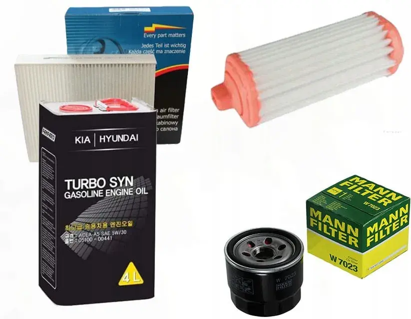 filtr kabinowy, filtr oleju, filtr powietrza, olej silnikowy