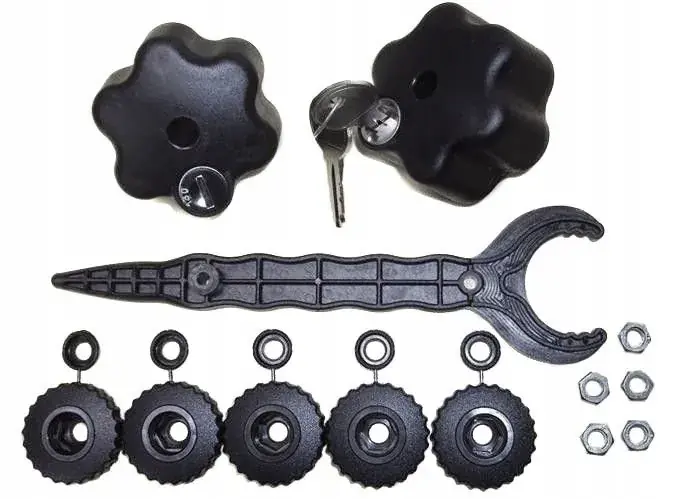 Tytan 3 Plus został wyposażony w zabezpieczenie przed kradzieżą w postaci zamka na kluczyk umieszczonym w gałce dociskającej bagażnik na kuli haka.