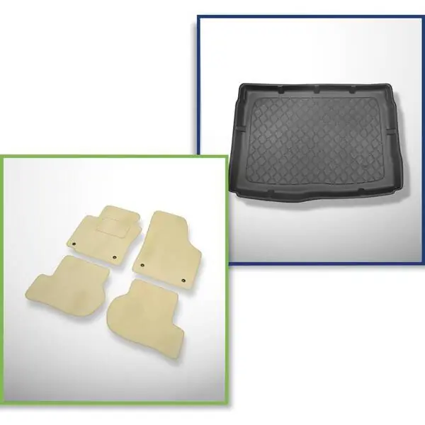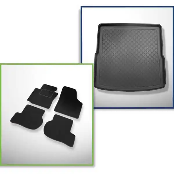 Bezpieczna płatność Zestaw: dywaniki welurowe + mata do bagażnika do Volkswagen Golf V 1K Comfortline (10.2003-2008) – z dojazdowym kołem zapasowym lub zestawem naprawczym