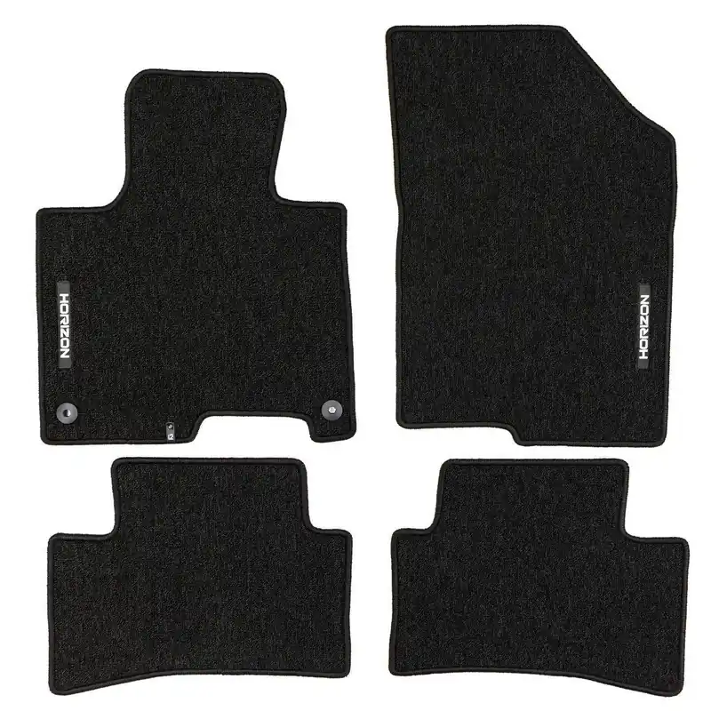 Dywaniki samochodowe Horizon są zaprojektowane na wymiar dla konkretnych modeli pojazdów, co zapewnia ich perfekcyjne dopasowanie i stabilność. Dzięki solidnemu mocowaniu na klipsy lub rzepy nie przesuwają się podczas jazdy, zwiększając bezpieczeństwo i komfort kierowcy oraz pasażerów. Wykonane są z wysokiej jakości wykładziny pętelkowej, która jest odporna na ścieranie, a jednocześnie miękka i przyjemna w dotyku.