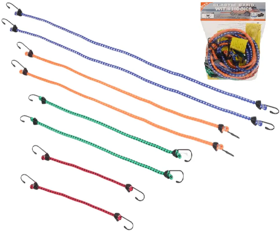 Elastyczna linka służąca do zabezpieczania przed przemieszczaniem różnych towarów podczas transportu. Metalowe karabińczyki są bezpieczne i trwałe, mocują się na przedmiocie bez możliwości przypadkowego odczepienia się.