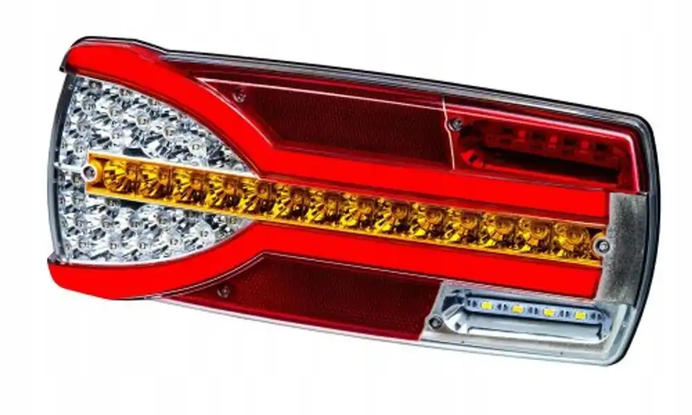 Dynamiczny kierunkowskaz natomiast to efekt wędrującego światła kierunku jazdy w którym każda z diod zapala się z nieco większym opóźnieniem. Lampa może pracować w instalacjach 12V jak i 24V, posiada homologacje kompatybilności elektromagnetycznej i stopień ochrony IP 67. Prawdopodobnie jest to najładniejsza lampa na rynku.