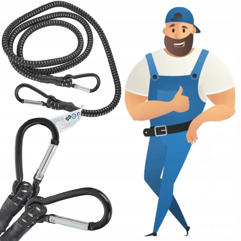 Lina elastyczna z hakiem służy do napinania plandek, siatek oraz do zabezpieczenia małego towaru. Stalowe haki zapewniają solidność i trwałość transportowanego produktu, dzięki czemu odpowiednio zabezpiecza towary przed uszkodzeniem lub upadkiem. Nadaje się również do wiązania sakw i toreb do bagażników rowerowych, lub do zabezpieczania towaru na dachu samochodów osobowych.