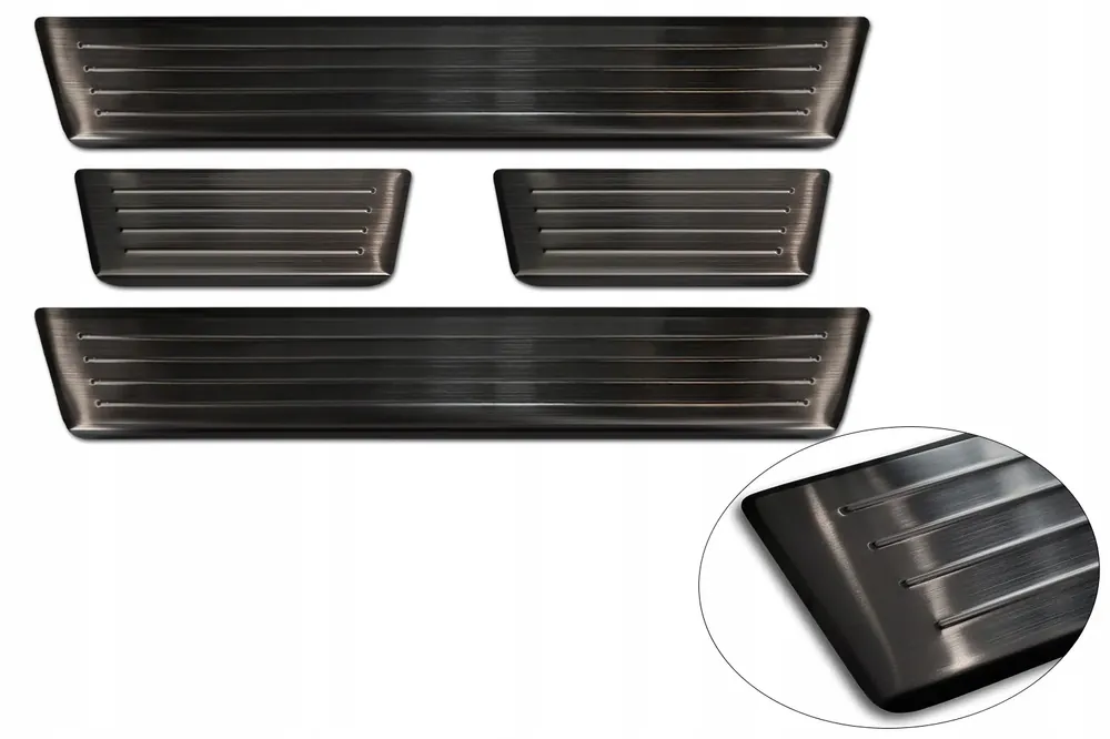 Często podróżujesz z rodziną? A może ktoś zarysował Twoje progi, a lakiernik słono liczy sobie za naprawę? Nakładki progowe to idealne rozwiązanie dla Ciebie oraz Twojego auta. Pełnią zarówno funkcje ochronne jak, również świetnie prezentują się jako element ozdobny. Cechuje ją odporność na warunki atmosferyczne (temperaturę -40°C/+50°C), wizyty w myjni (wilgoć) oraz .Nie są to typowe listwy progowe, gdyż stal nierdzewna z której są wykonana jest dodatkowo satynowana. Szczotkowanie sprawia, że ich wykończenie idealnie wyskalowane jest pomiędzy odcieniem lustra, a głębokim matem. Standardem w nakładkach jest także ochrona rantu progu, poprzez specjalnie wyprofilowane do tego zagięcie.