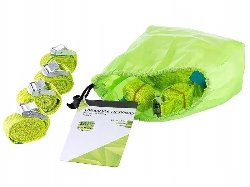 Linki zostały wykonane z bardzo wytrzymałego, elastycznego tworzywa. Zapewnia ono twałość i i bezpieczeństwo rzewożonych przedmiotów. Haki wyposażone w gumowe nakładki w celu zabezpieczenia powierzchni.