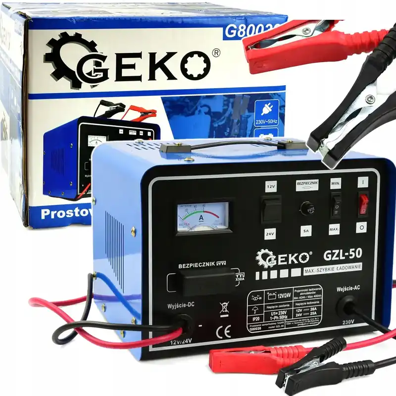 Kleszczowe zaciski akumulatorowe „krokodylki”, przystosowane do prądu o natężeniu nie przekraczającym 100A.