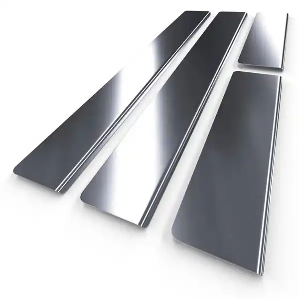 - Srebrne dedykowane nakładki na progi samochodowe ze stali kwasoodpornej tłoczone są w precyzyjnie zaprojektowanych matrycach wytwarzanych przez obrabiarki CNC i wycinane przy użyciu najnowocześniejszego lasera światłowodowego, co gwarantuje ich doskonałe dopasowanie do progów danego modelu auta.