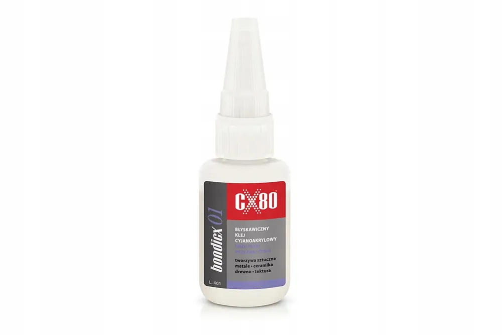 Produkt Bondicx 01 jest jednoskładnikowym, szybkoutwardzającym się klejem cyjanoakrylowym o niskiej lepkości. Uniwersalny, bardzo mocny, polecany szczególnie do tworzyw sztucznych, elastomerów, metali, ceramiki. Polecany szczególnie do łączenia materiałów kwaśnych np. drewna, tektury itp.