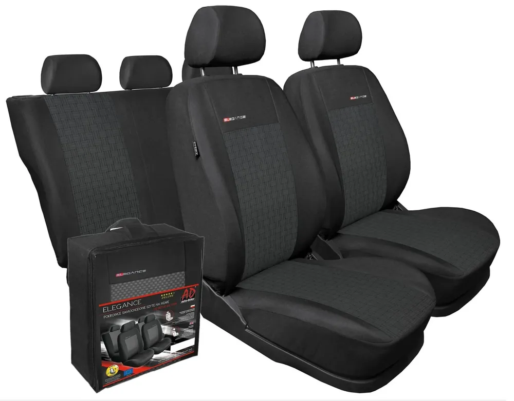 Materiały laminowane są pianką poliuretanową i podszewką. W lewej górnej części pokrowców przednich znajduje się delikatny haft ELEGANCE.