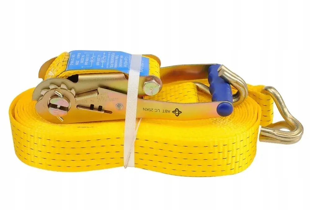 Wysokiej jakości dwuczęściowa wytrzymała taśma o szerokości 50 mm i długości 12 m do mocowania bagażu. Solidne wykonanie daje pewność porządnego montażu i spokojnej jazdy. Taśma posiada przekładnię umożliwiającą odpowiednie naciągnięcie i zablokowanie. Zdolność mocowania 2500 daN.