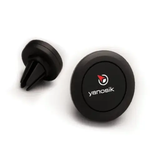 Dedykowany uchwyt dla urządzeń Yanosik. Zestaw składa się z metalowej obudowy, która trzyma urządzenie oraz żabką z ruchomą głowicą. Nie psuje wnętrza samochodu.