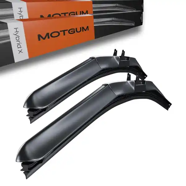 • Zaprojektowane zgodnie z najnowszymi trendami motoryzacyjnymi, hybrydowe pióra wycieraczek z serii Hybrid X marki Motgum charakteryzują się wytrzymałą metalową konstrukcją, ukrytą pod estetyczną plastikową oprawą, co doskonale wpływa na ich właściwości aerodynamiczne przy zachowaniu nowoczesnej stylistyki.