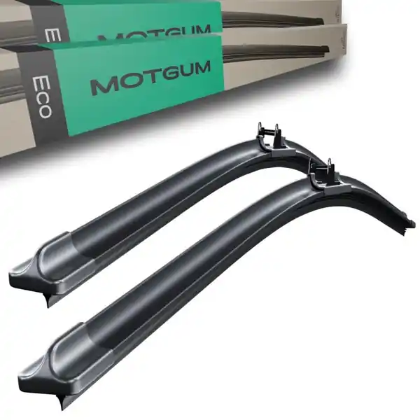 - Płaskie pióra wycieraczek z ekonomicznej serii ECO marki Motgum posiadają gumowy wkład, który montowany jest bezpośrednio wewnątrz sprężystych listew pióra z pominięciem metalowej oprawy, co wraz z odpowiednio dopasowaną formą pióra skutkuje zmniejszonym oporem powietrza.