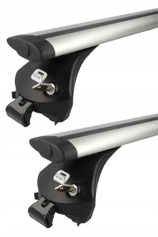Uniwersalny aluminiowy bagażnik dachowy AMOS Nowy na relingi klasyczne (otwarte).