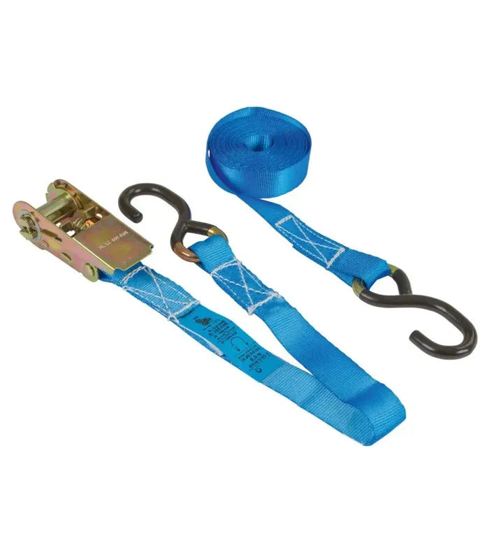 Niebieski pas transportowy Kerbl z napinaczem, 6 m × 25 mm, udźwig 800 kg (0,72 kN). Wytrzymały i bezpieczny, idealny do mocowania i transportu cięższych ładunków.